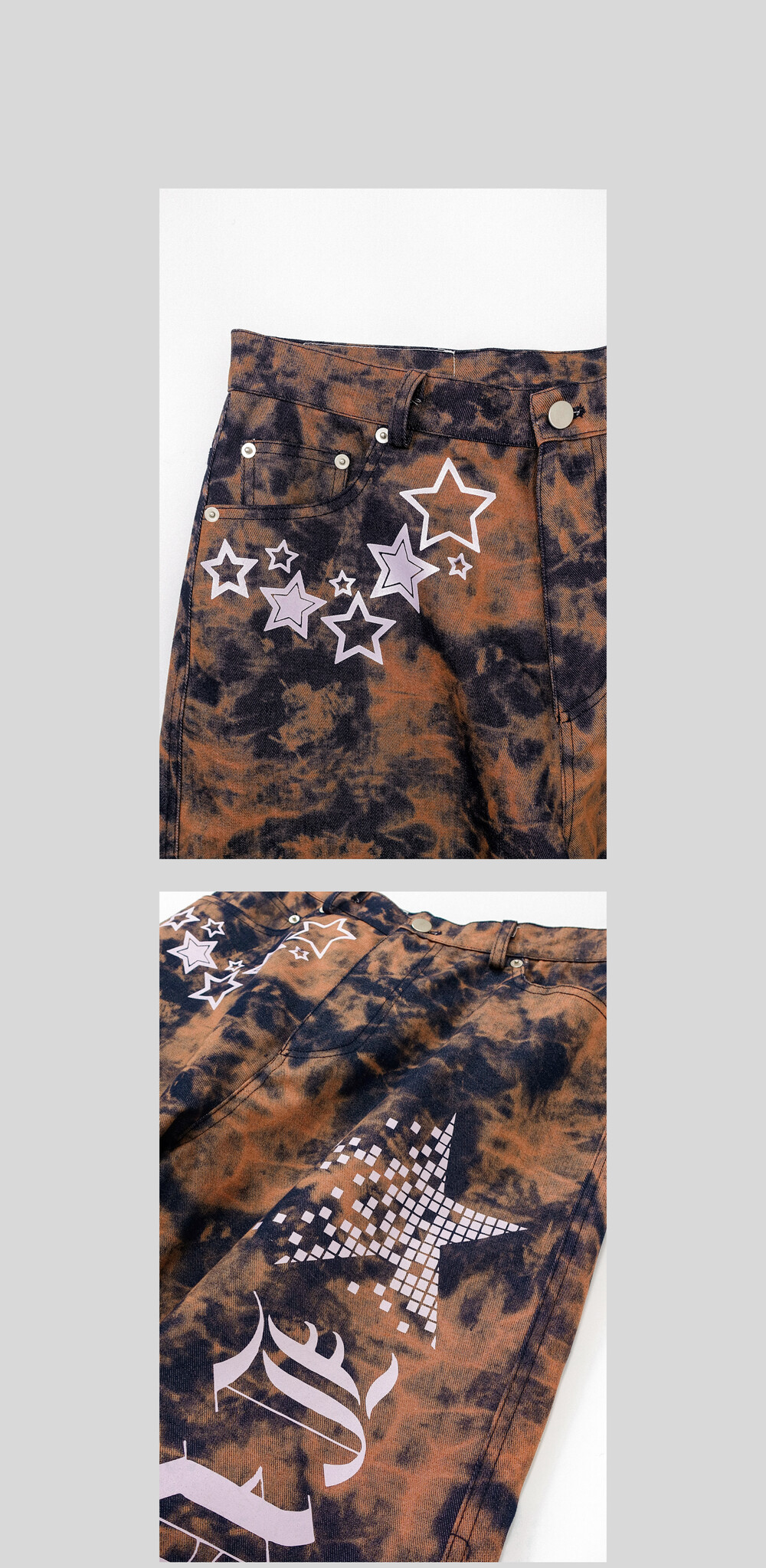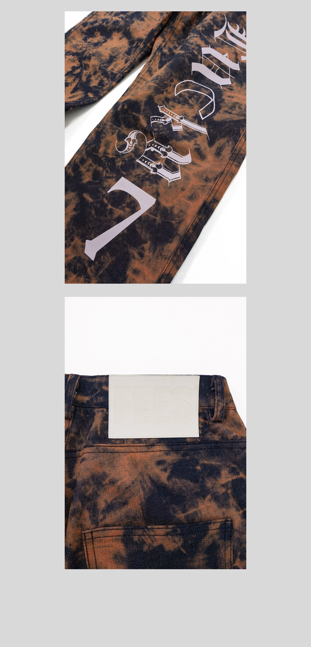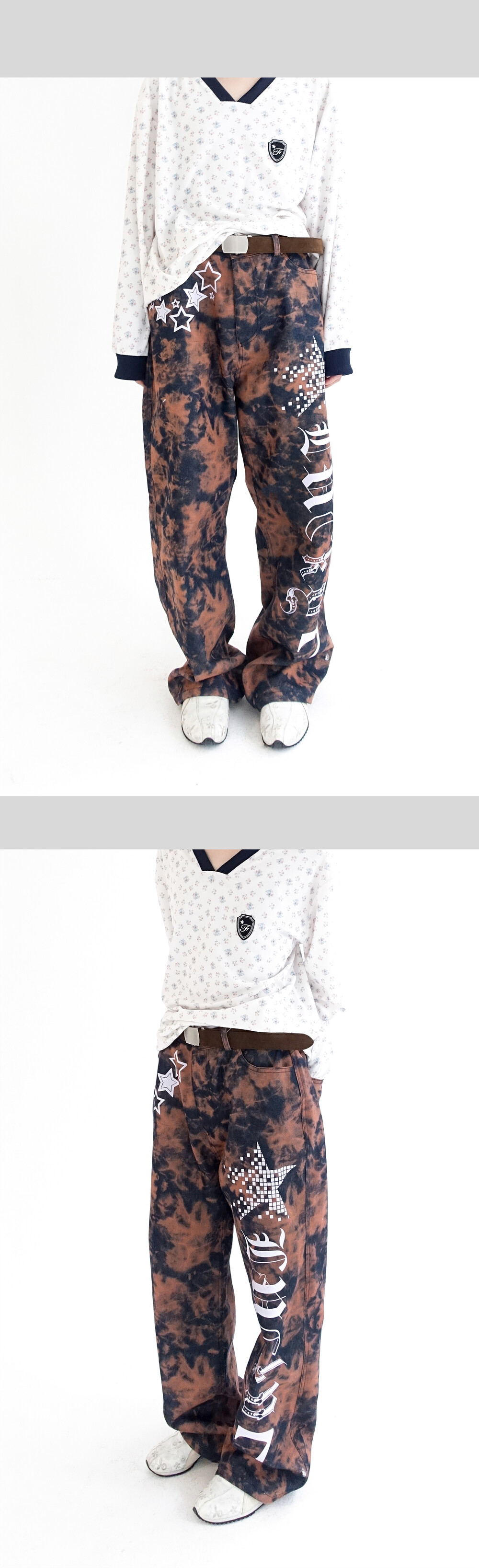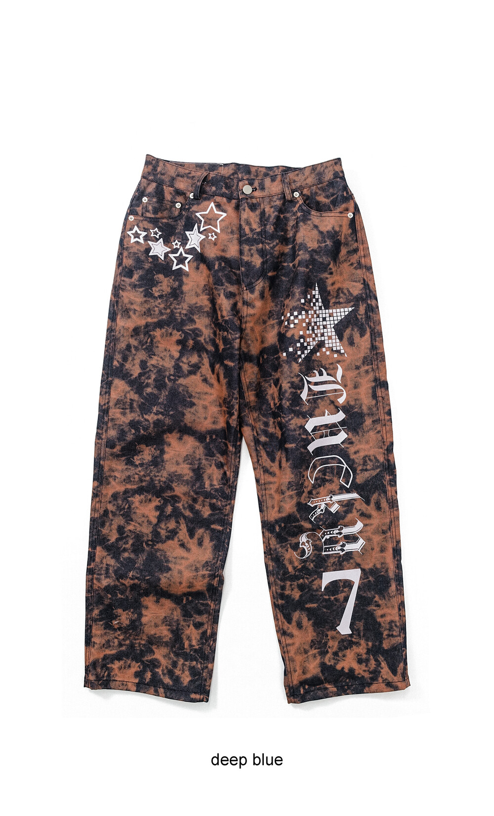 - 유니크한 다잉 패턴 위에, 팝한 “lucky 7” 프린팅을 더한 와이드 데님