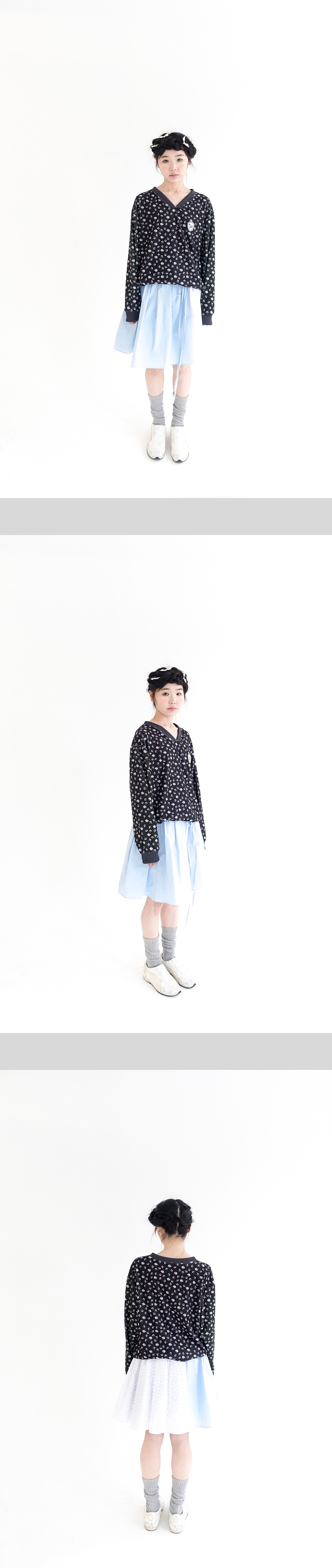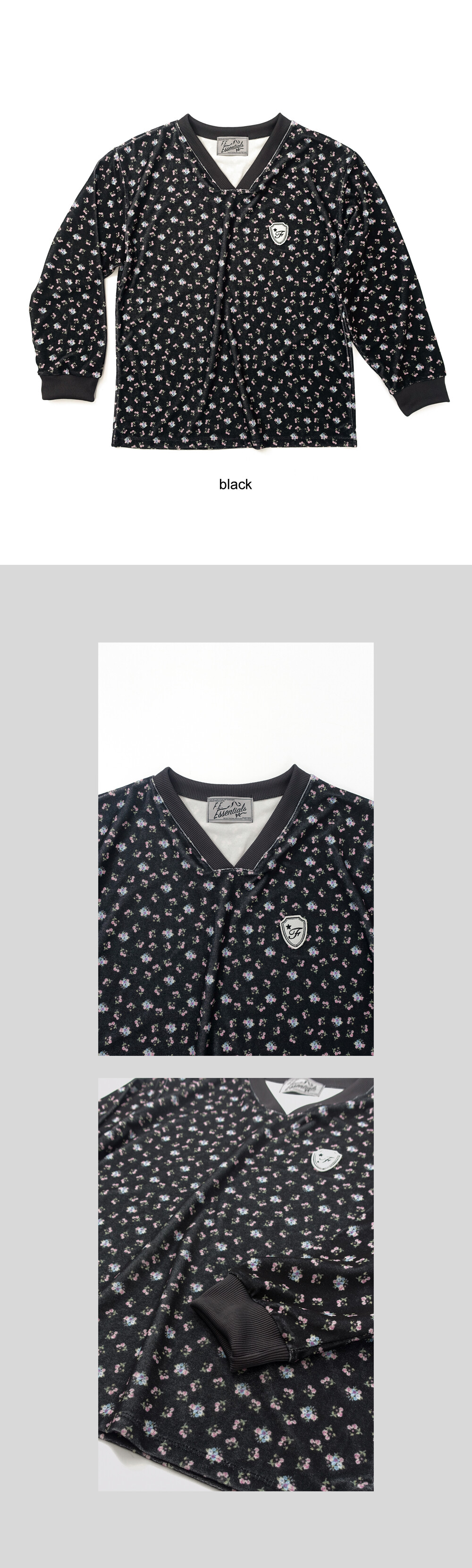 [F.E.E.S] V neck flower terry shirt (black)