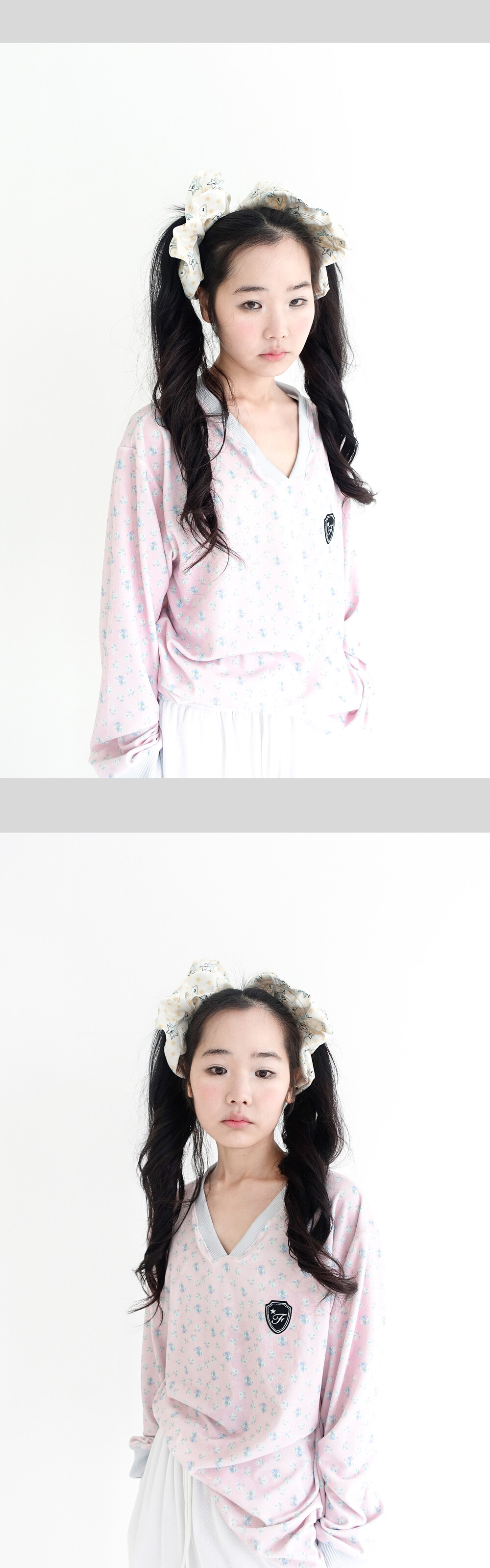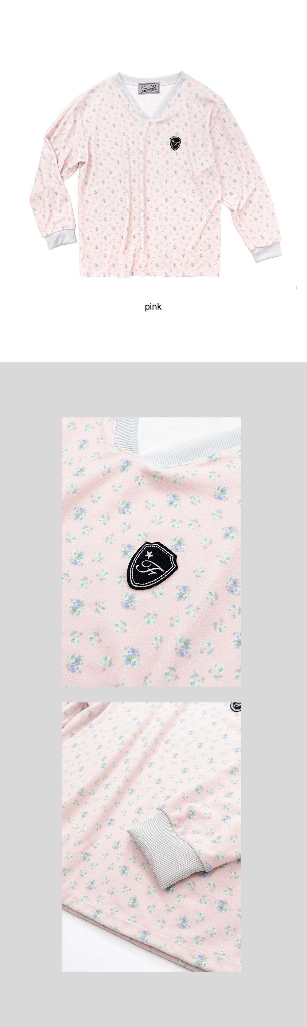 4차★[F.E.E.S] V neck flower terry shirt (pink)