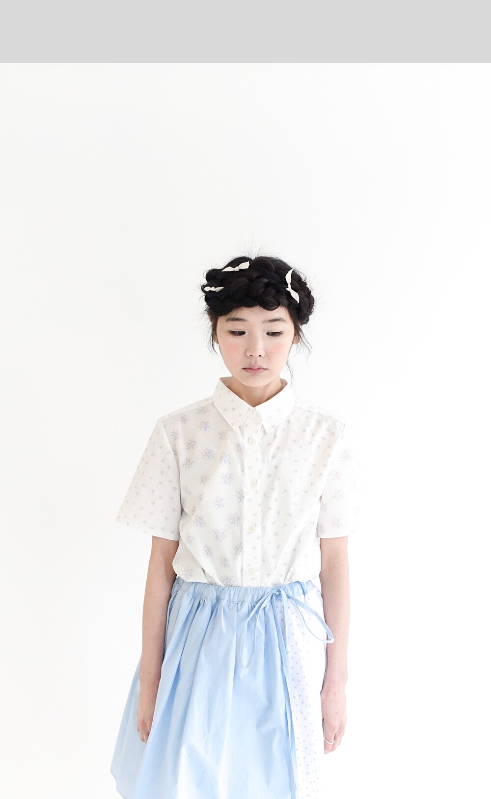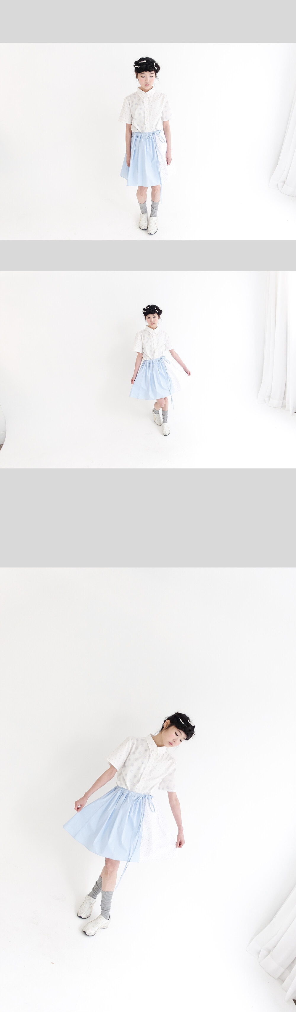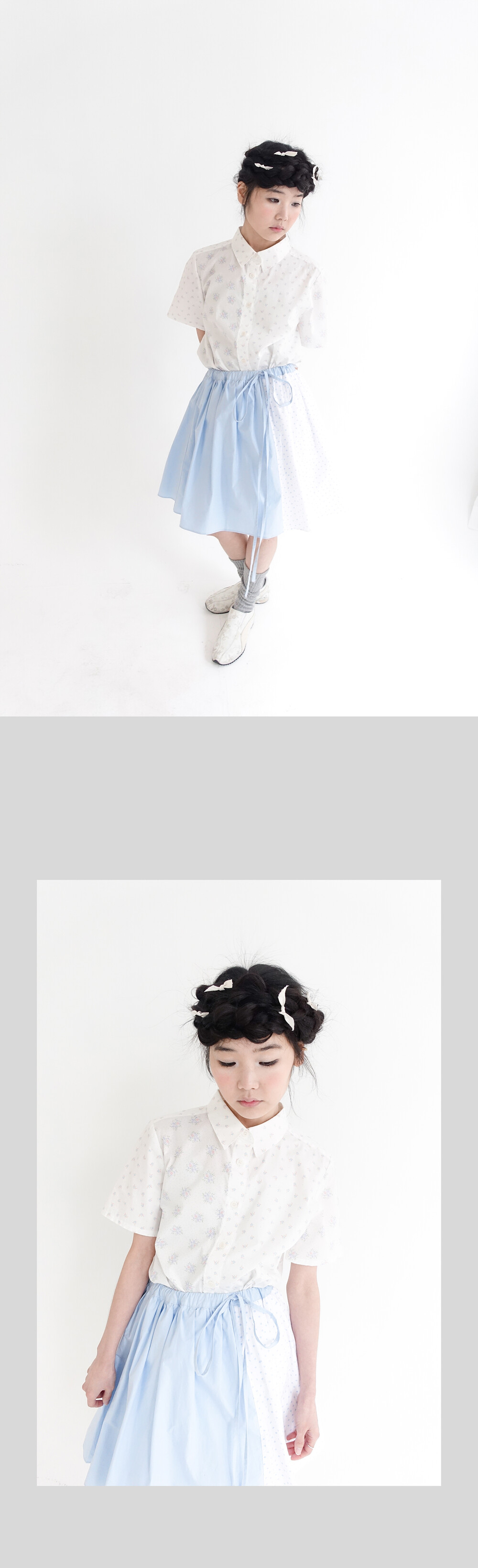 3차★[F.E.E.S] half pattern cotton skirt (blue)
