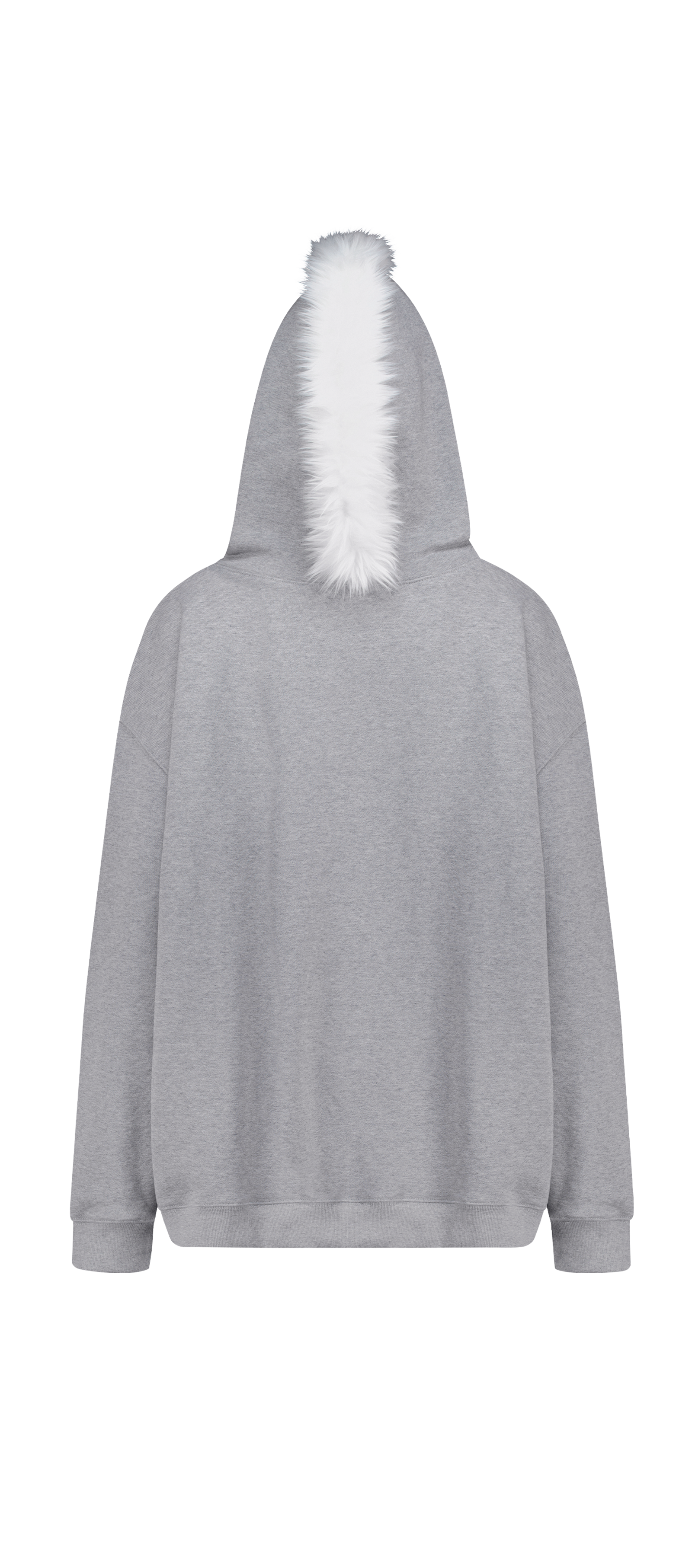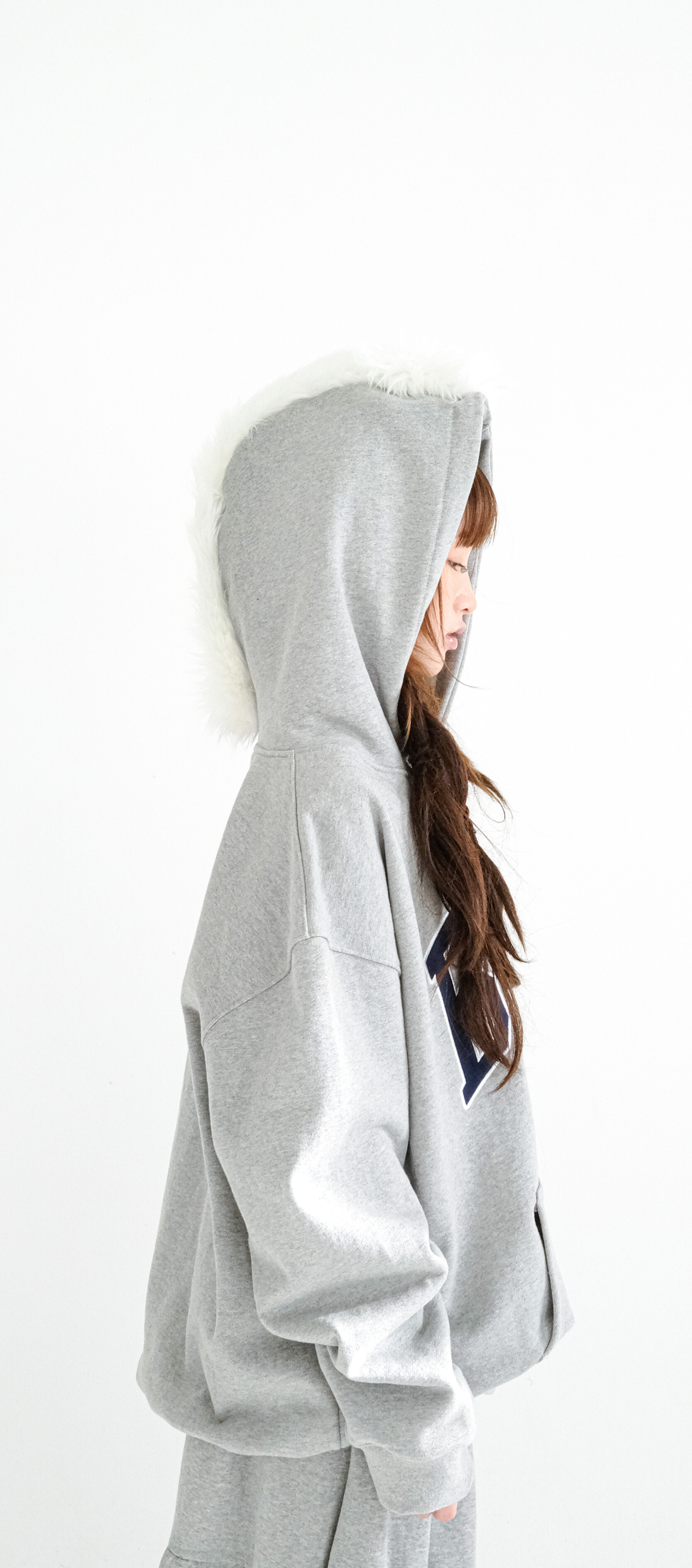 - 오버핏 실루엣과 모히칸을 연상케하는 퍼 트리밍이 유니크한 후드