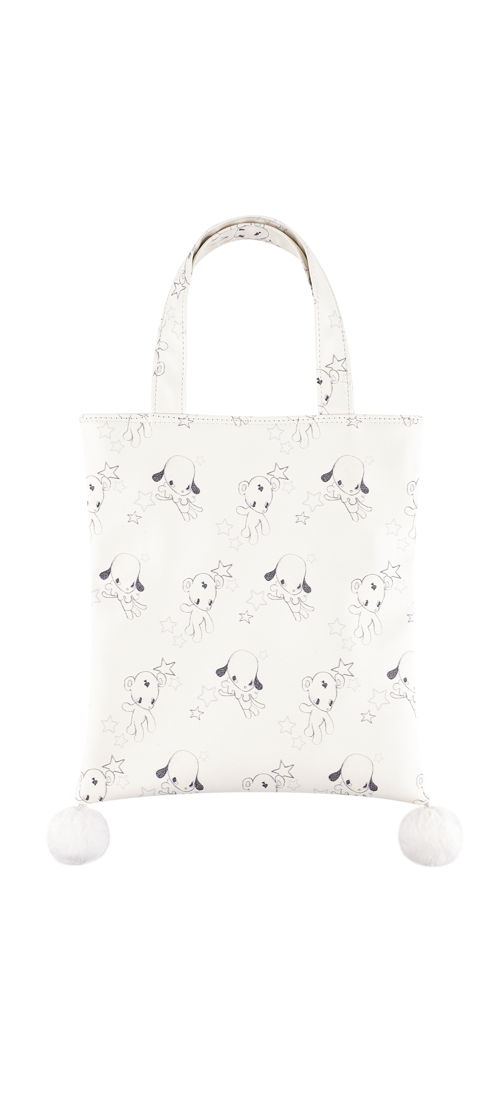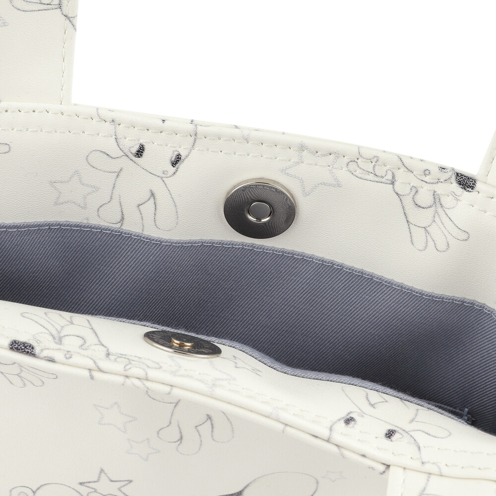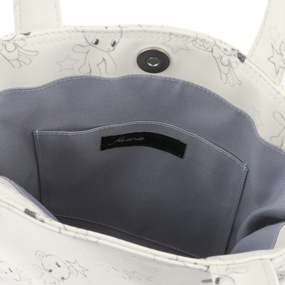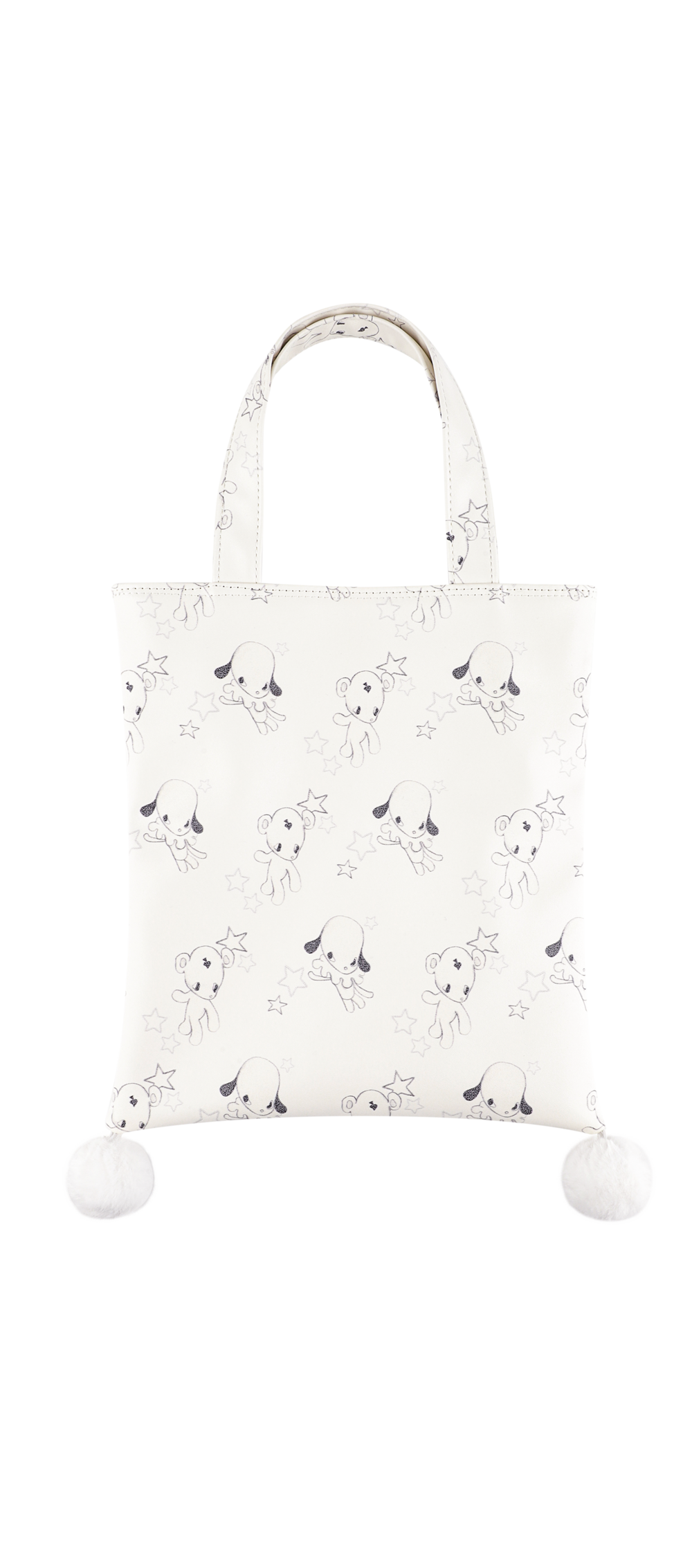 - 러블리한 무드의 Jun&Ello 패턴과 폼폼 디테일이 매력적인 레더 토트백