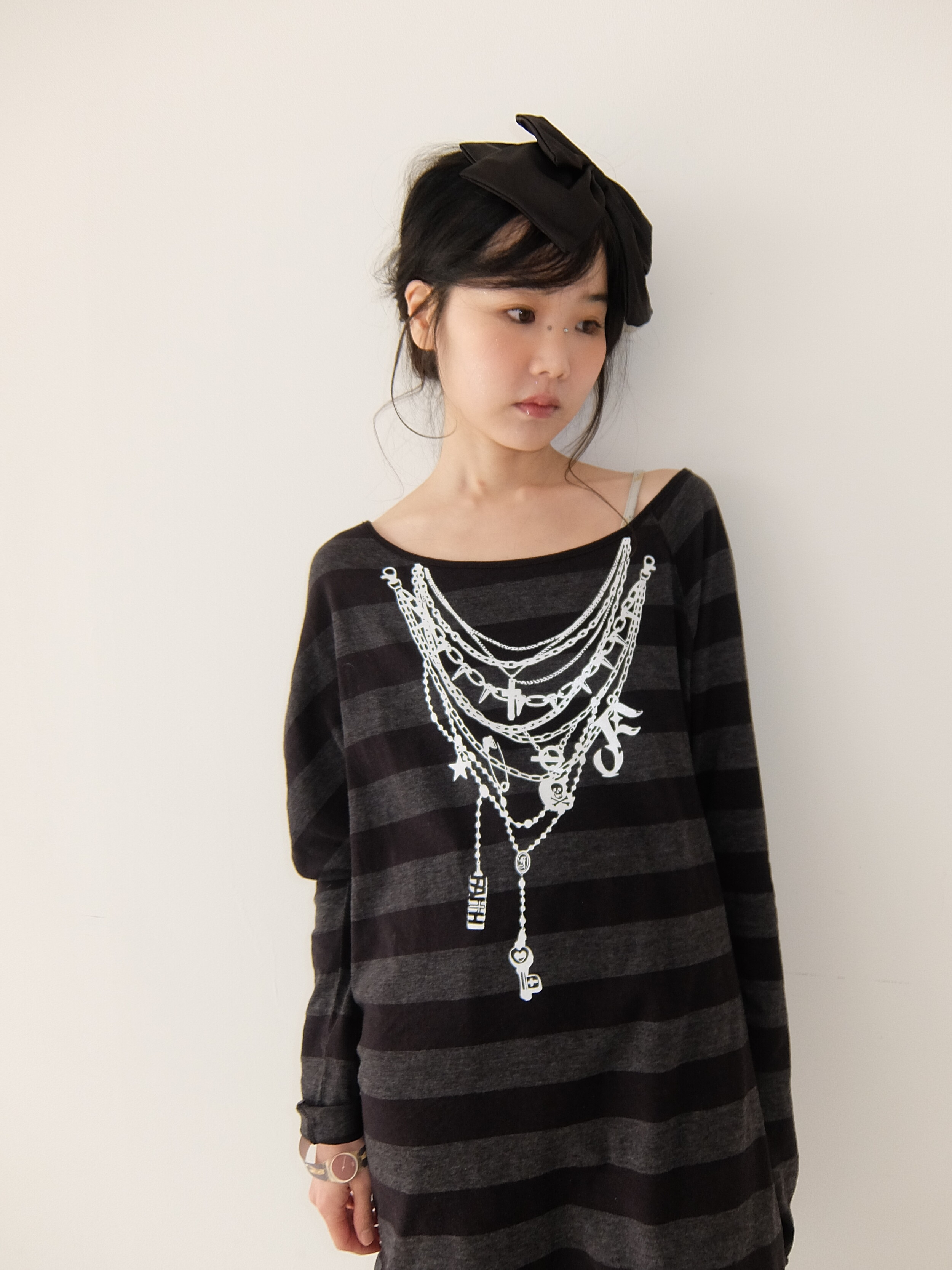 - 깊은 넥라인으로 오프숄더 연출 가능