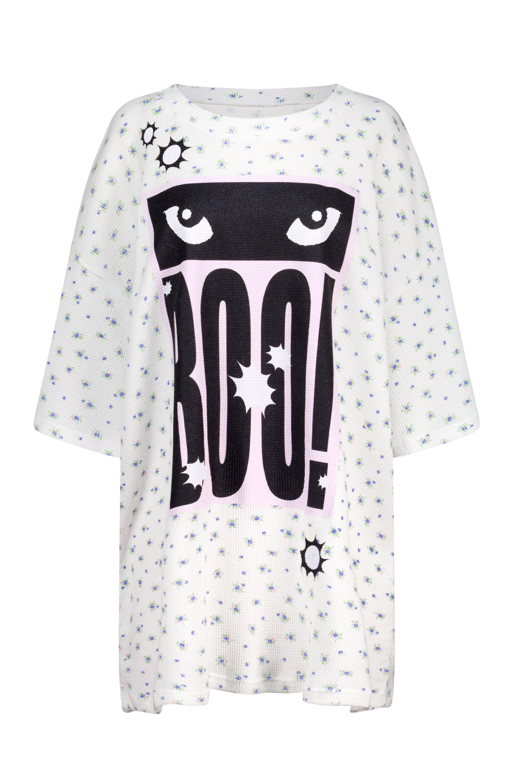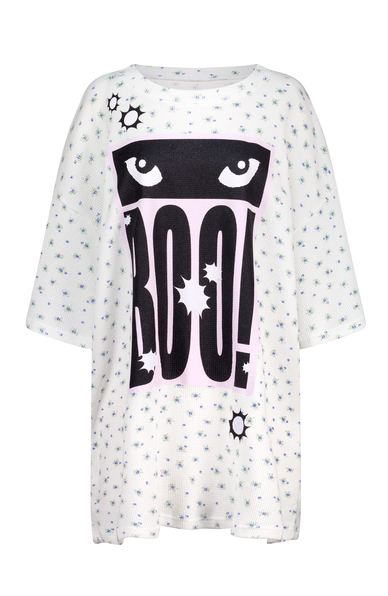 - 유니크한 캣츠 아이 프린팅과 플라워 패턴의 조합이 매력적인 탑