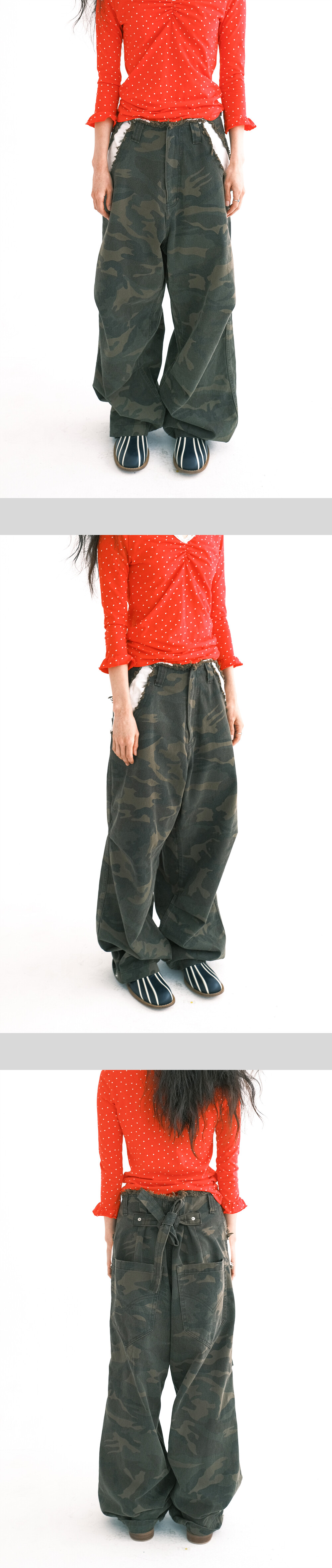 2차★[fa.er.ie] cut-off cotton maxi pants (camouflage)