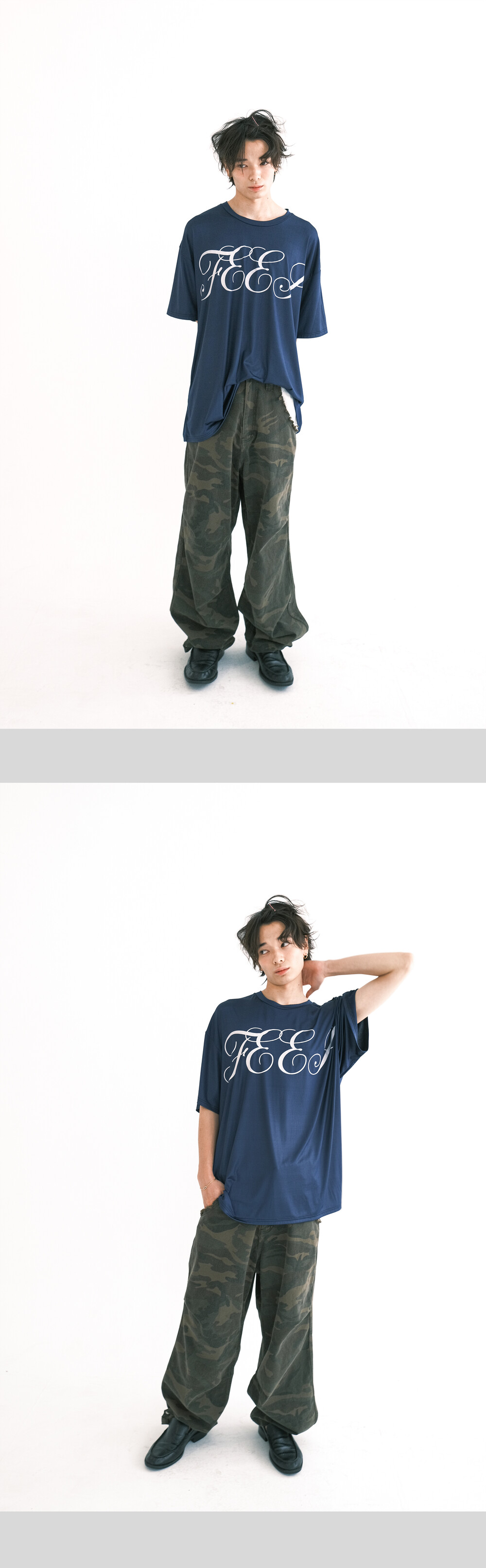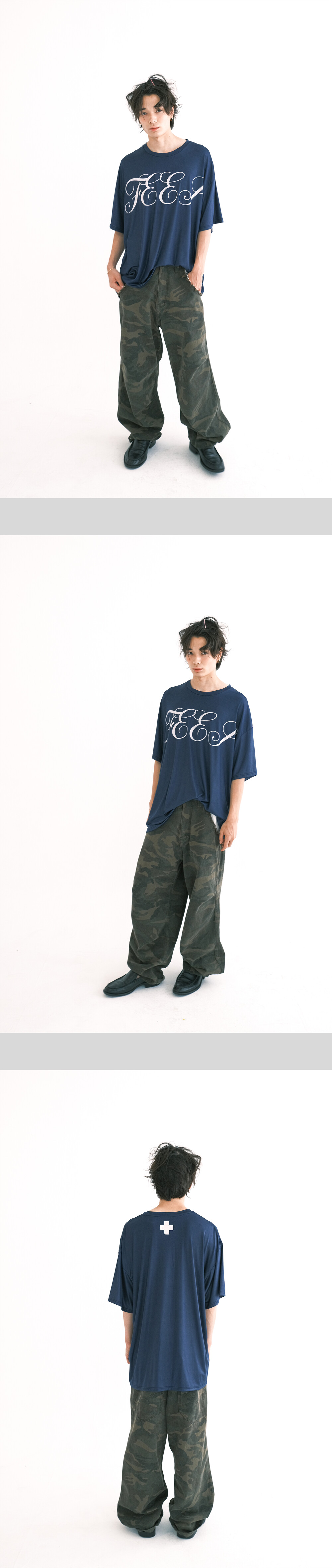 - 카모플라주 패턴과 컷오프 디테일로 유니크한 무드의 와이드 팬츠