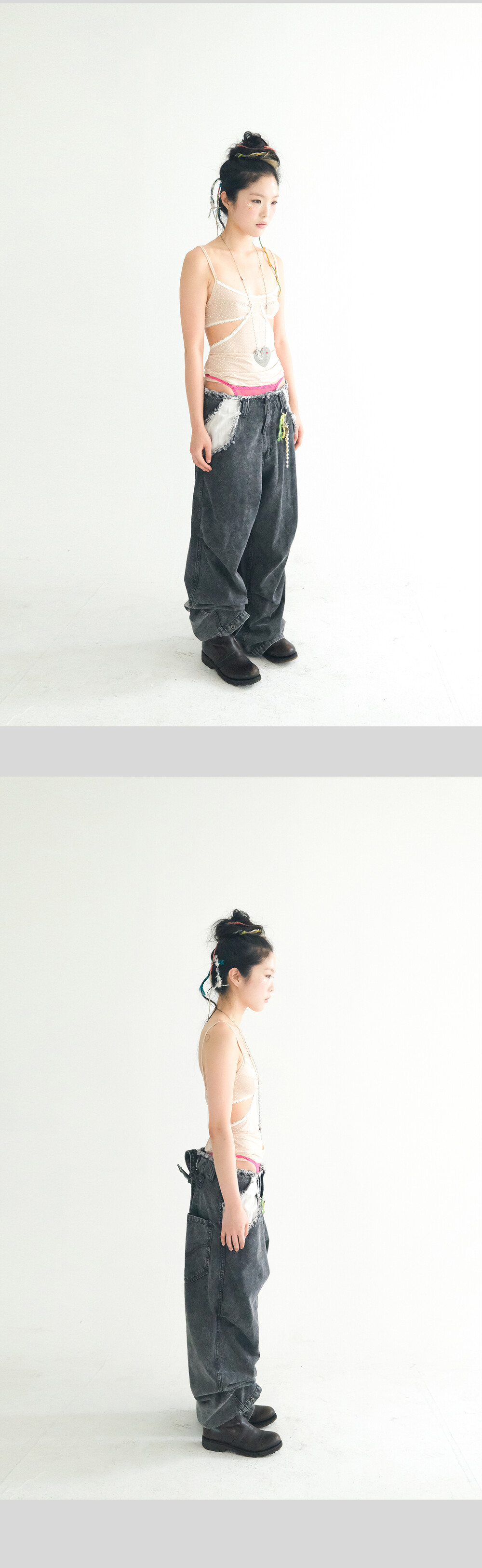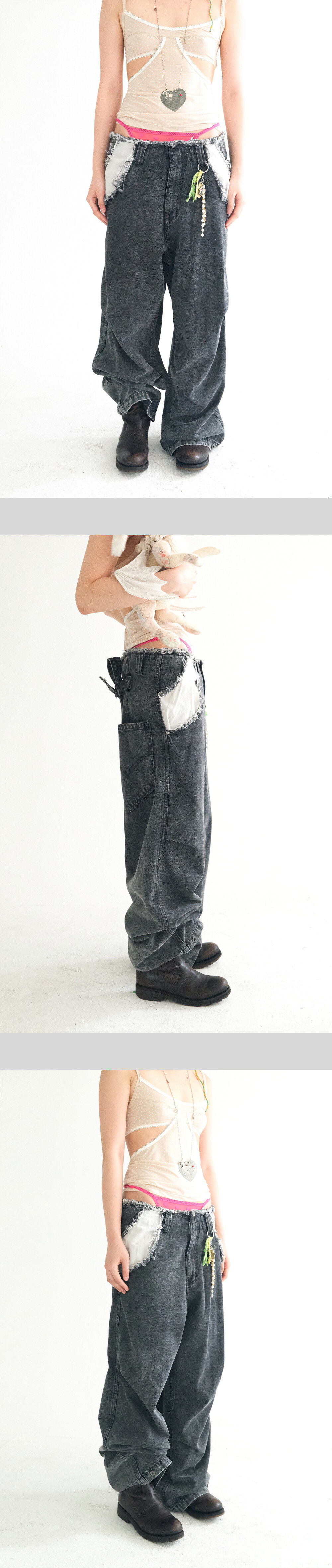 2차★[fa.er.ie] cut-off denim maxi pants (black)