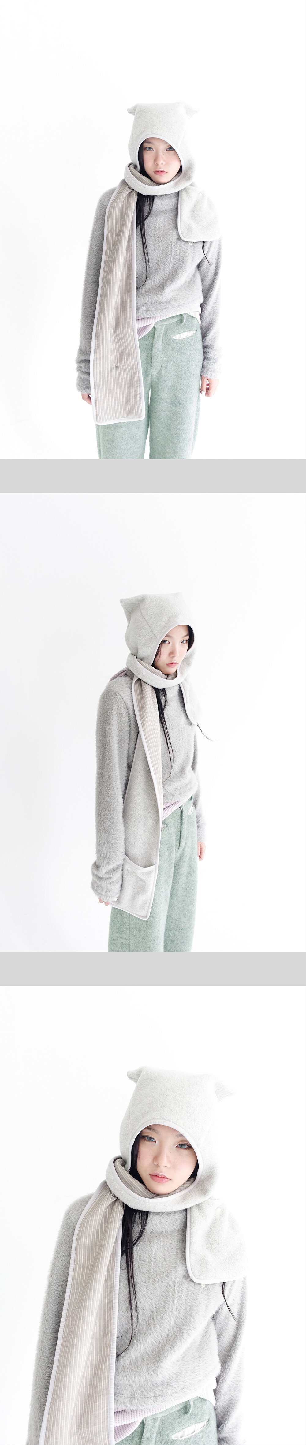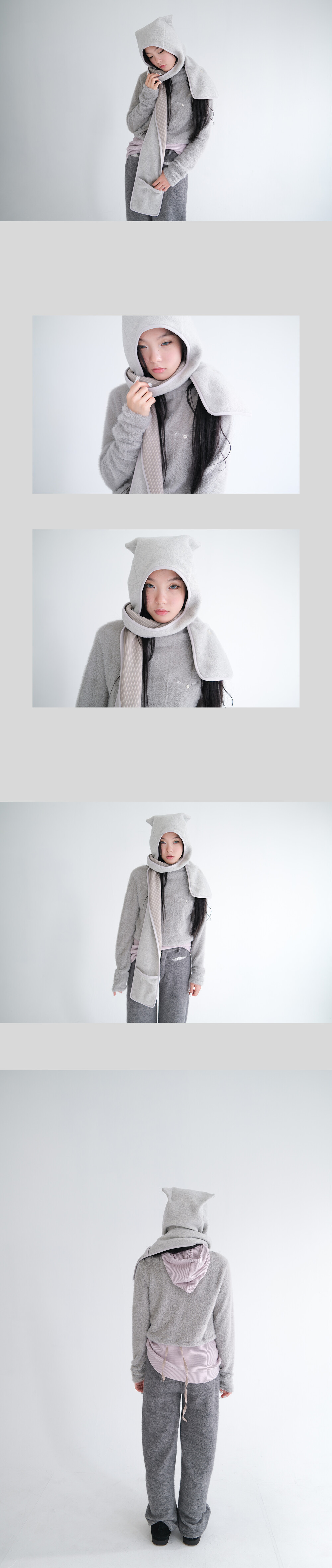 2차★[fa.er.ie] fleece ear hood muffler (melange grey)