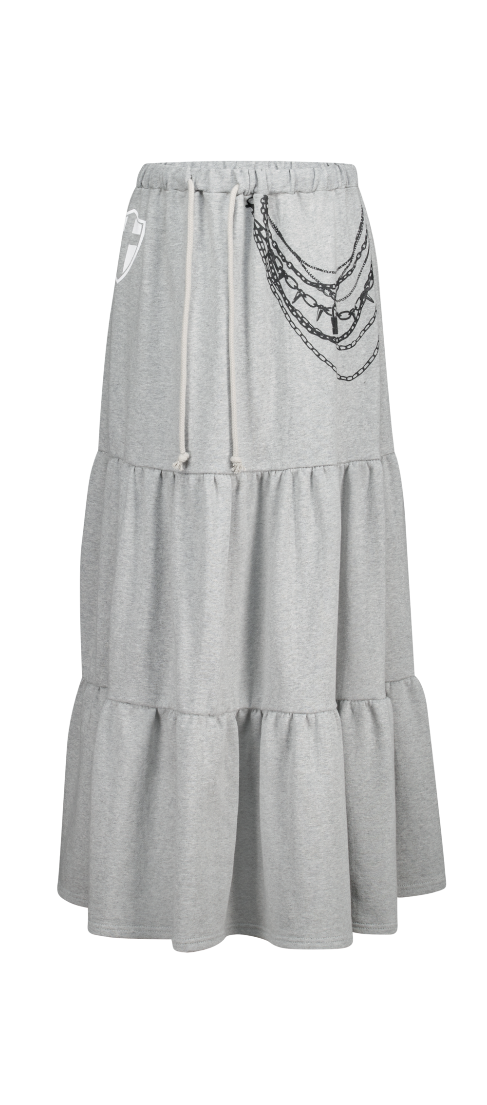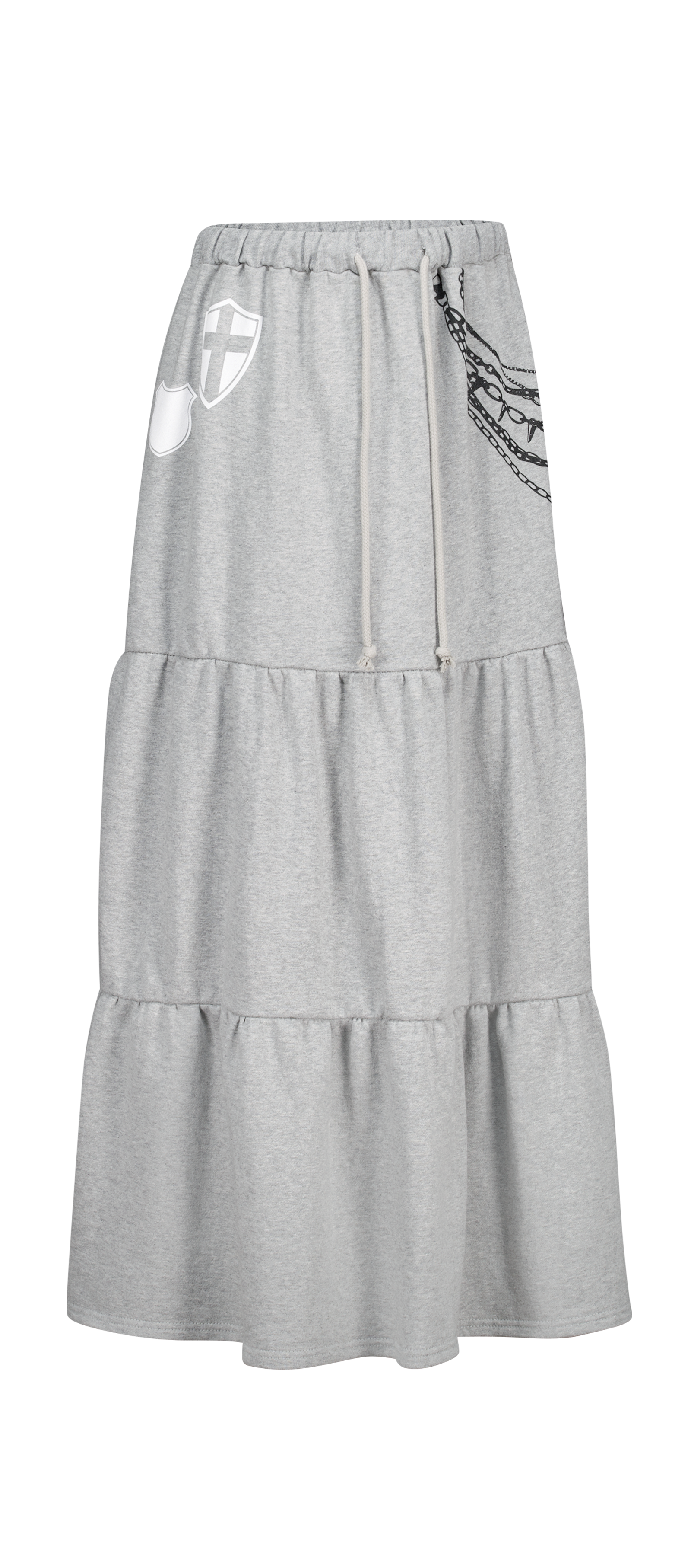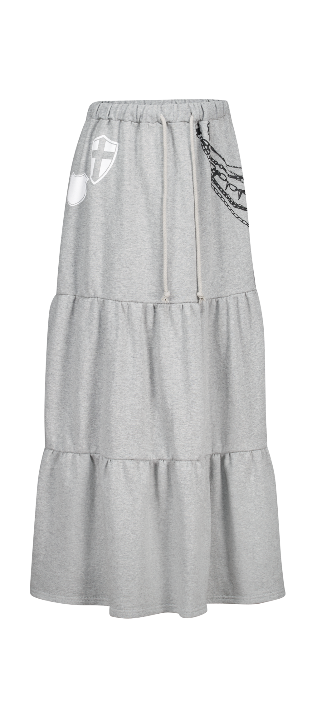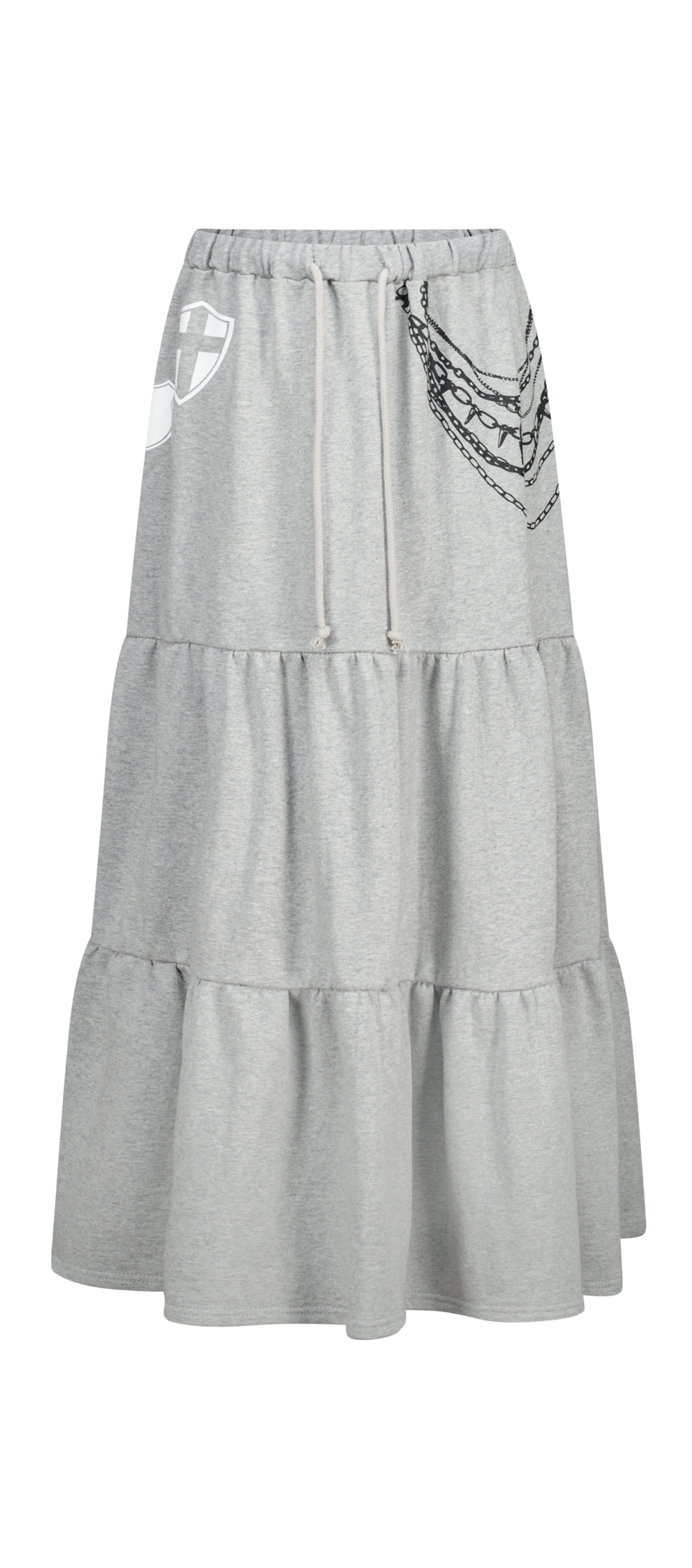 - 프린팅 디테일과 맥시한 실루엣이 유니크한 티어드 스커트