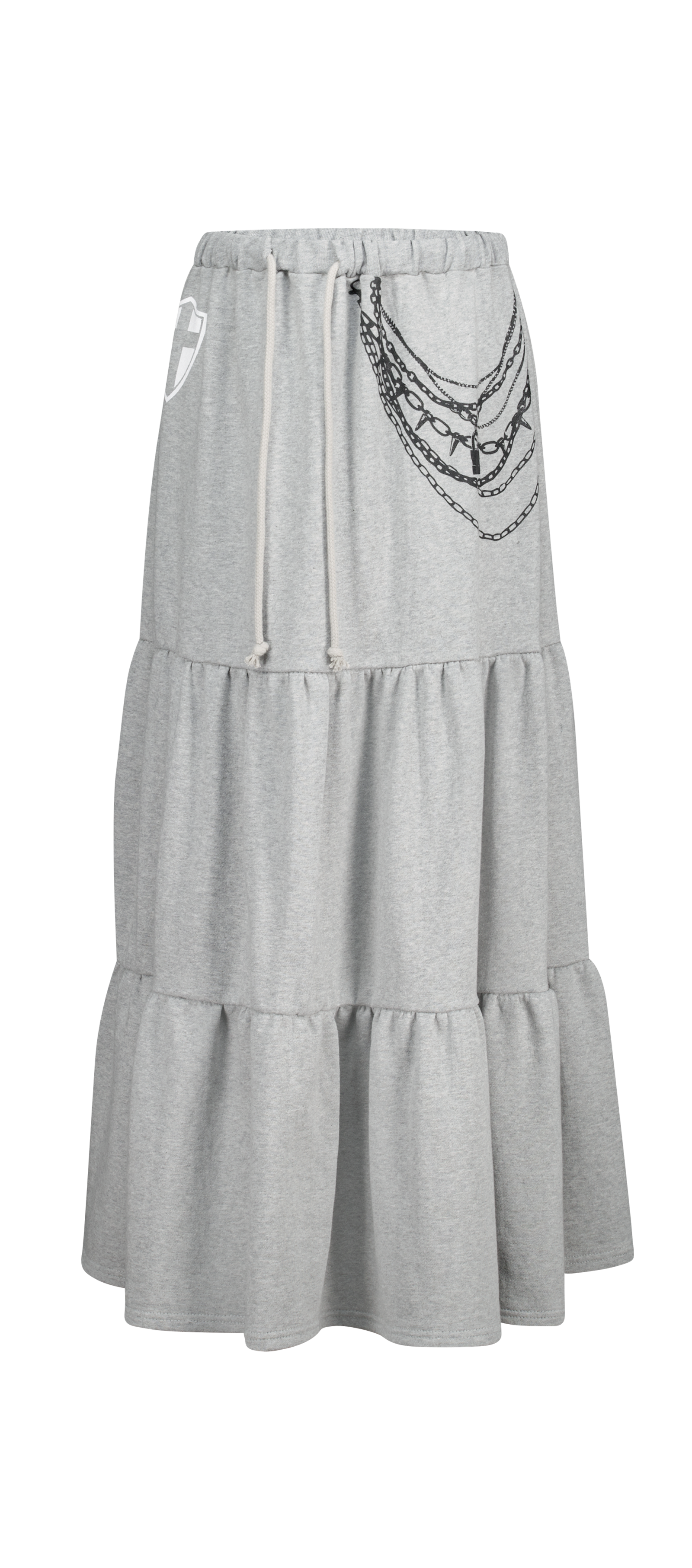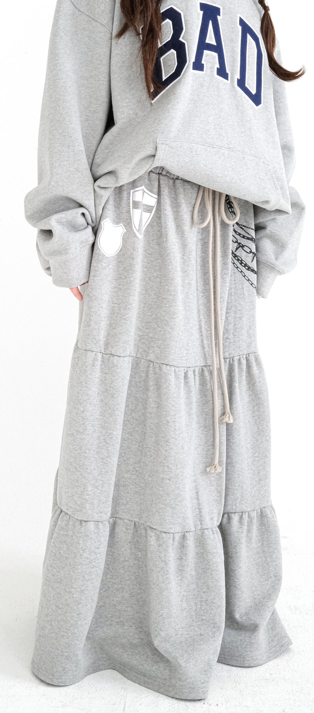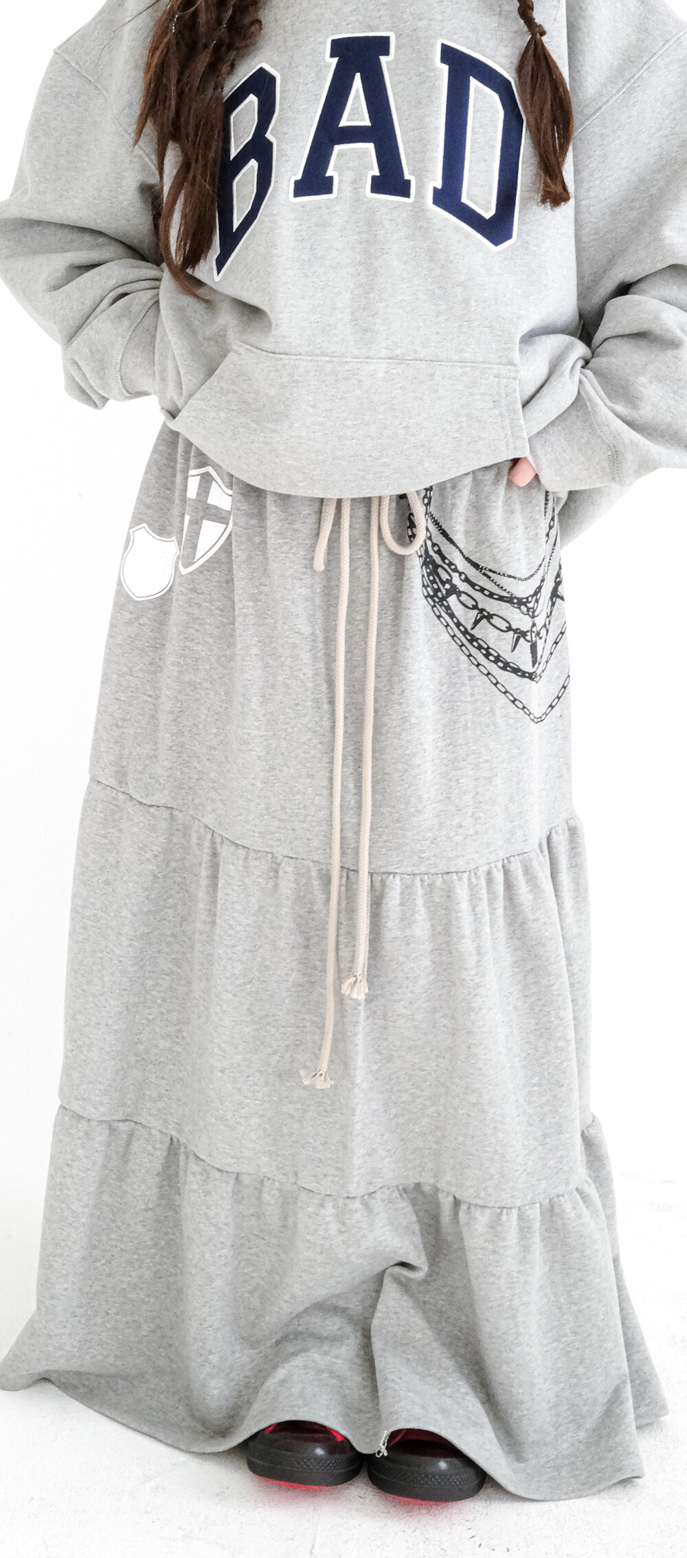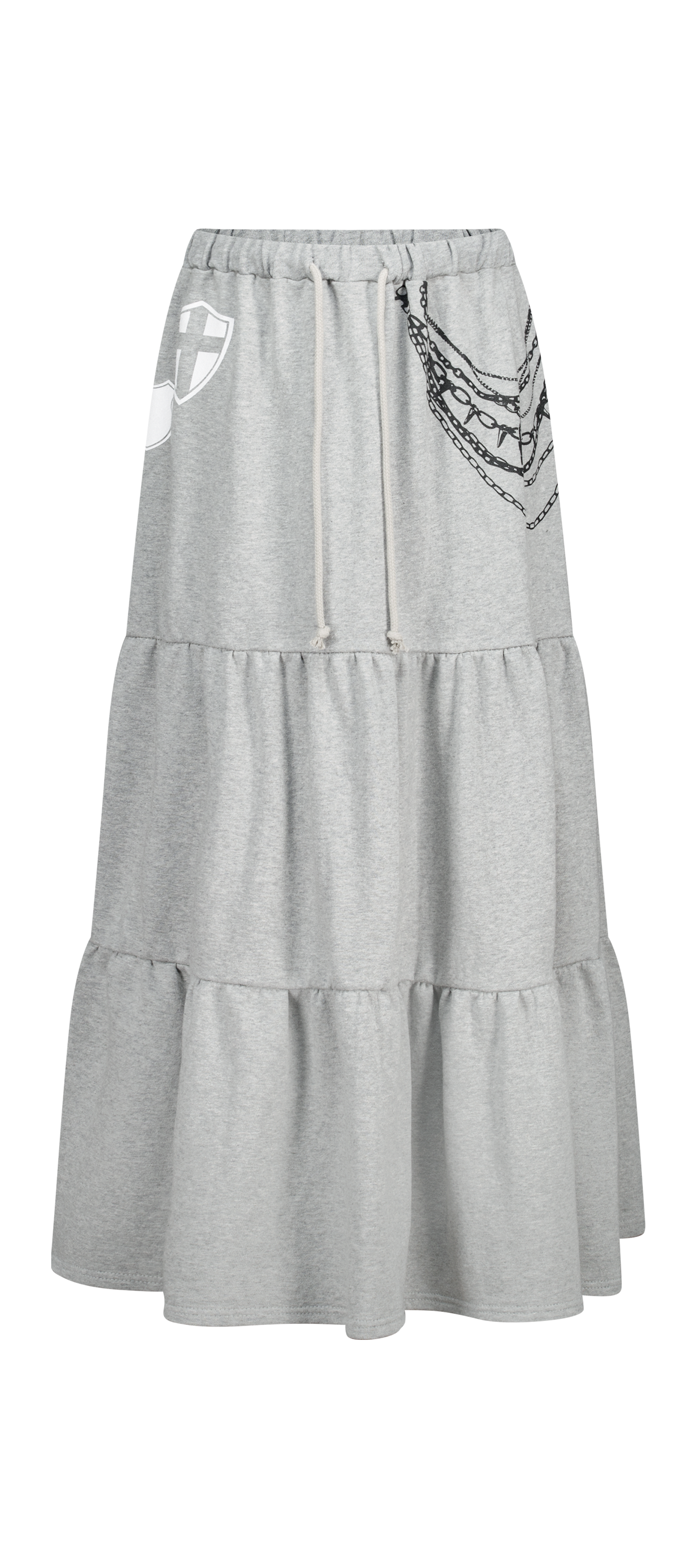 - 프린팅 디테일과 맥시한 실루엣이 유니크한 티어드 스커트