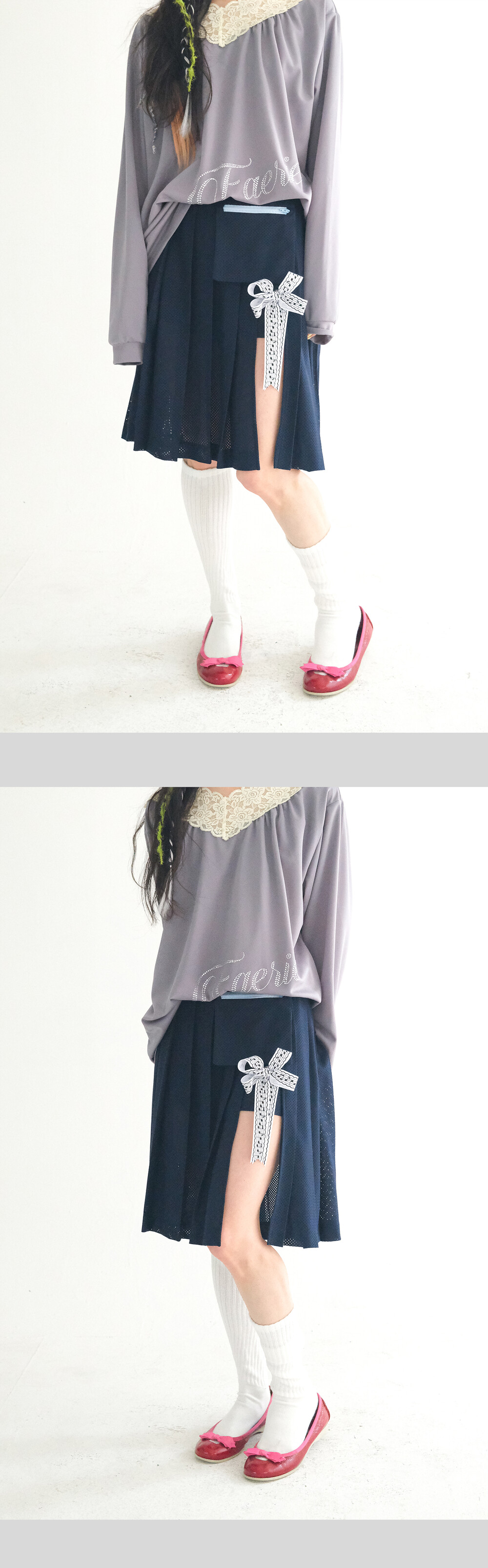[fa.er.ie] mesh pocket pleats skirt pants (navy)