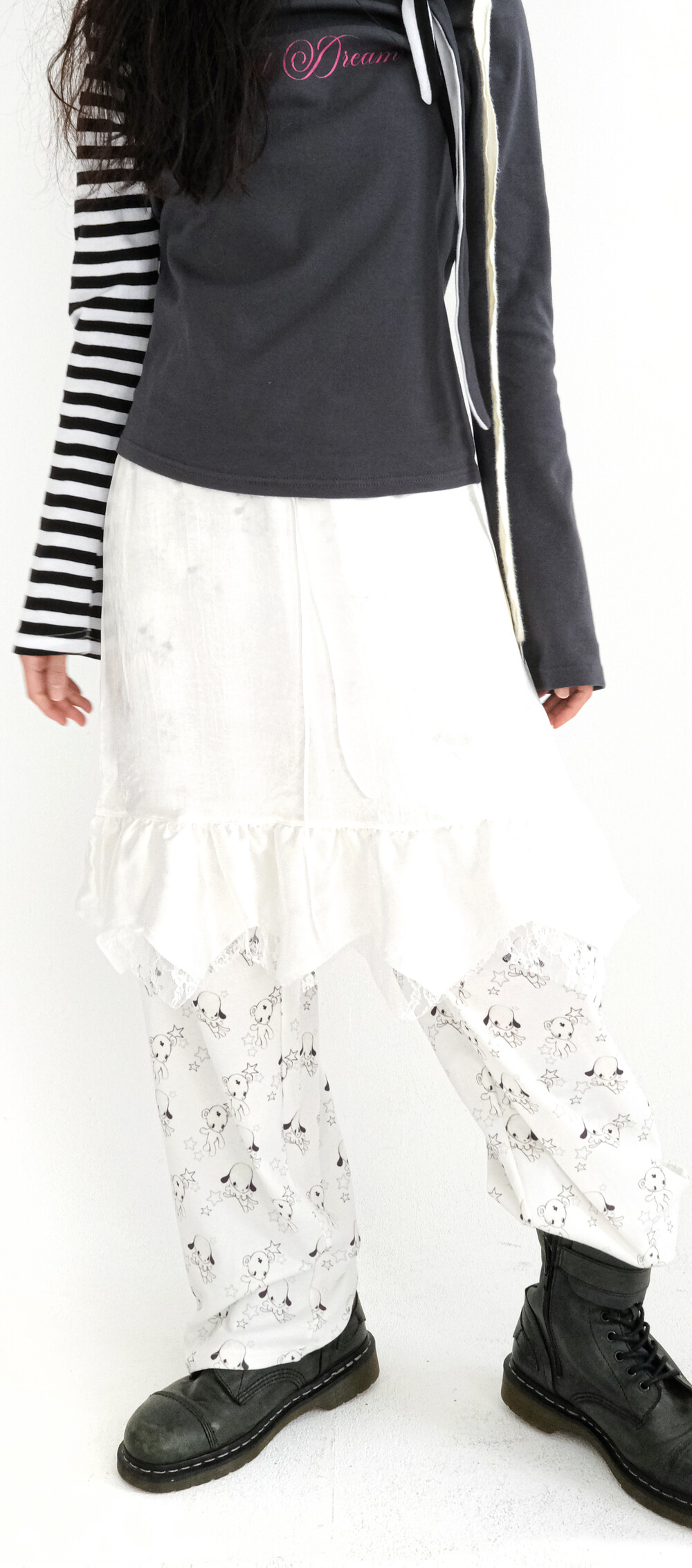 - 허리에 새틴,레이스 스트랩으로 사이즈 조절 가능