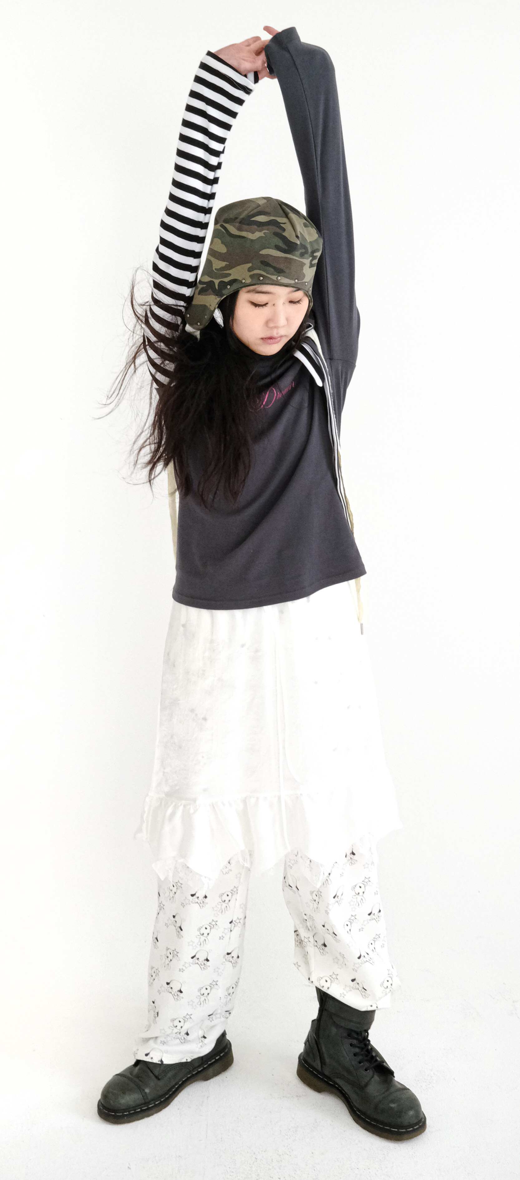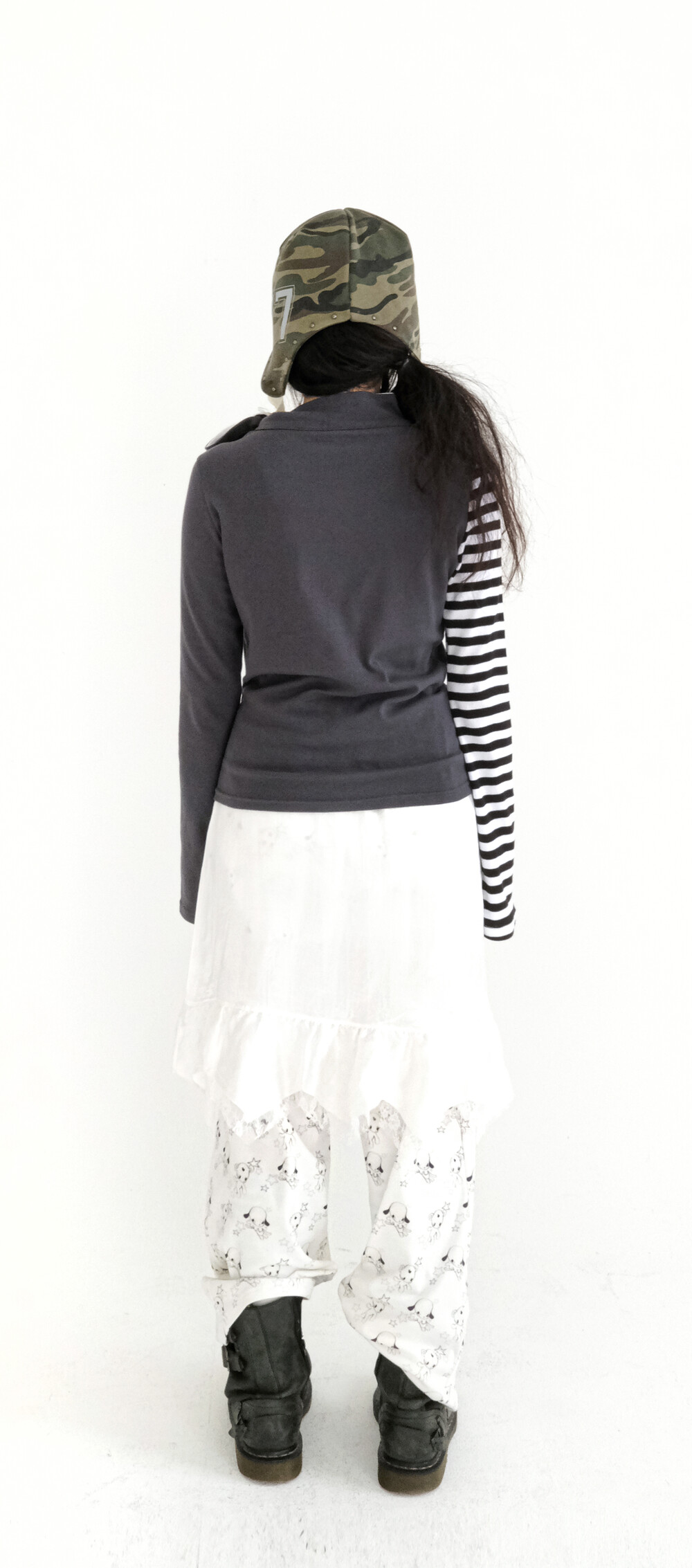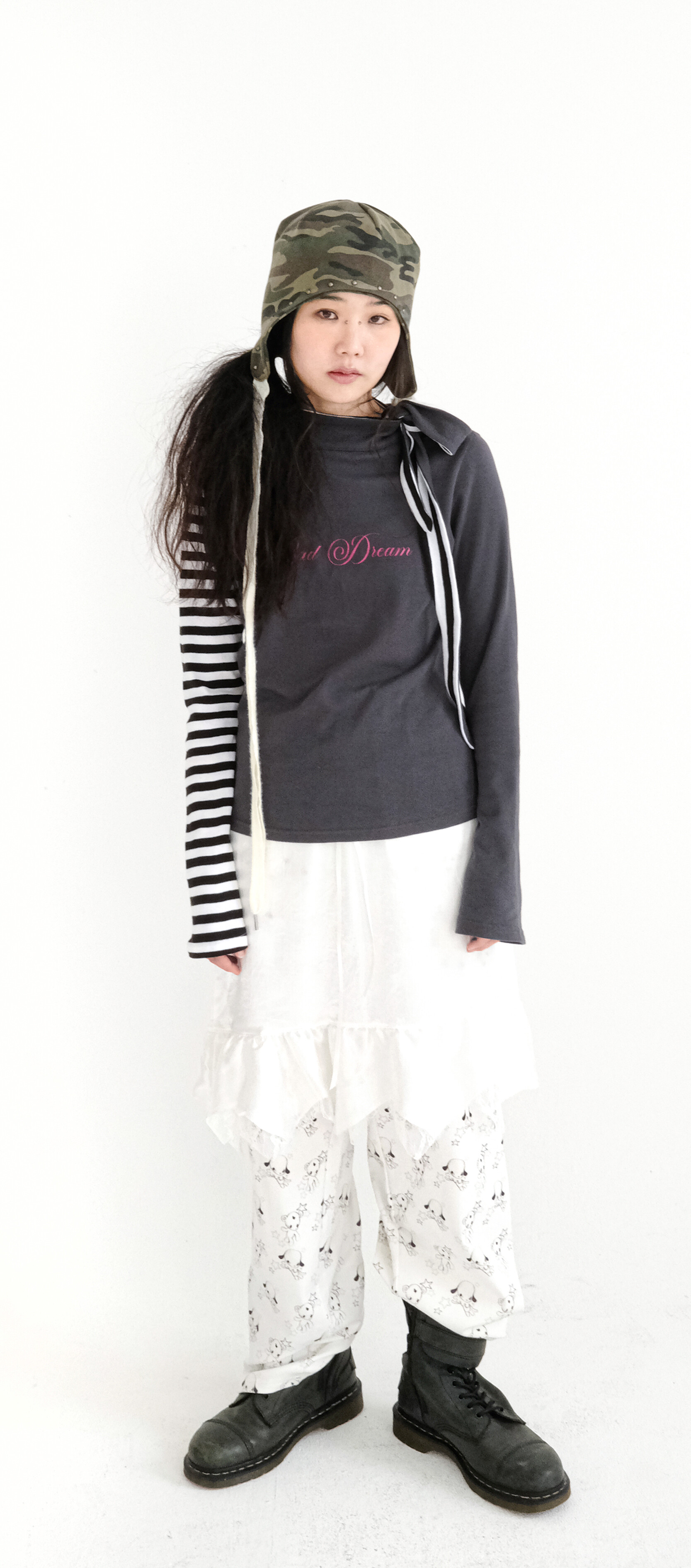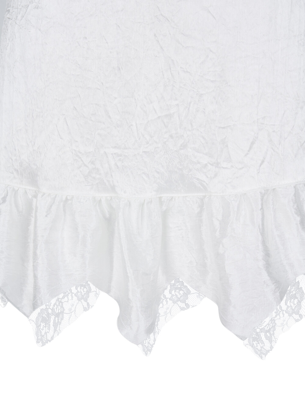 - 밑단의 뾰족한 컷팅 디테일과 페미닌한 레이스 포인트