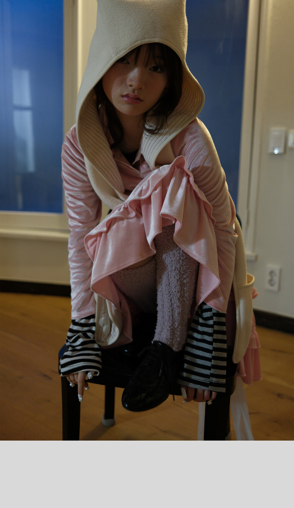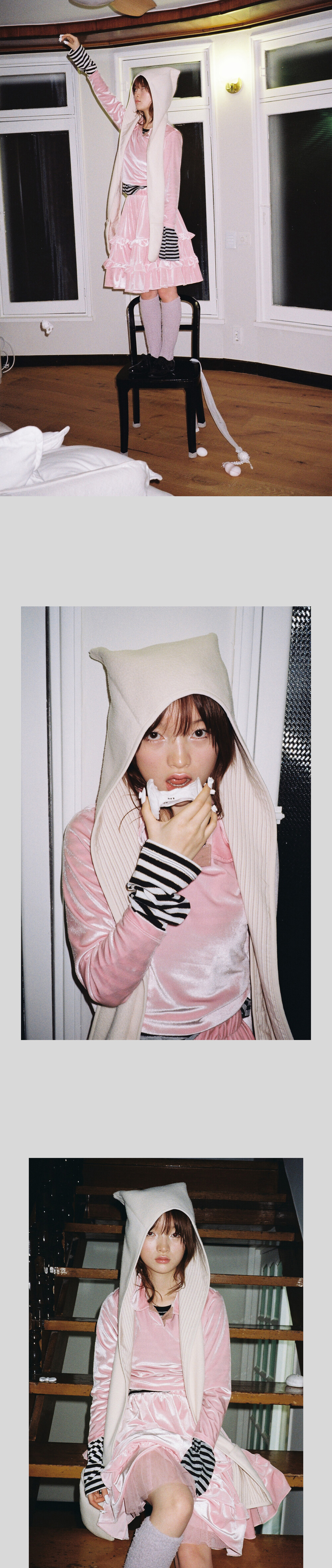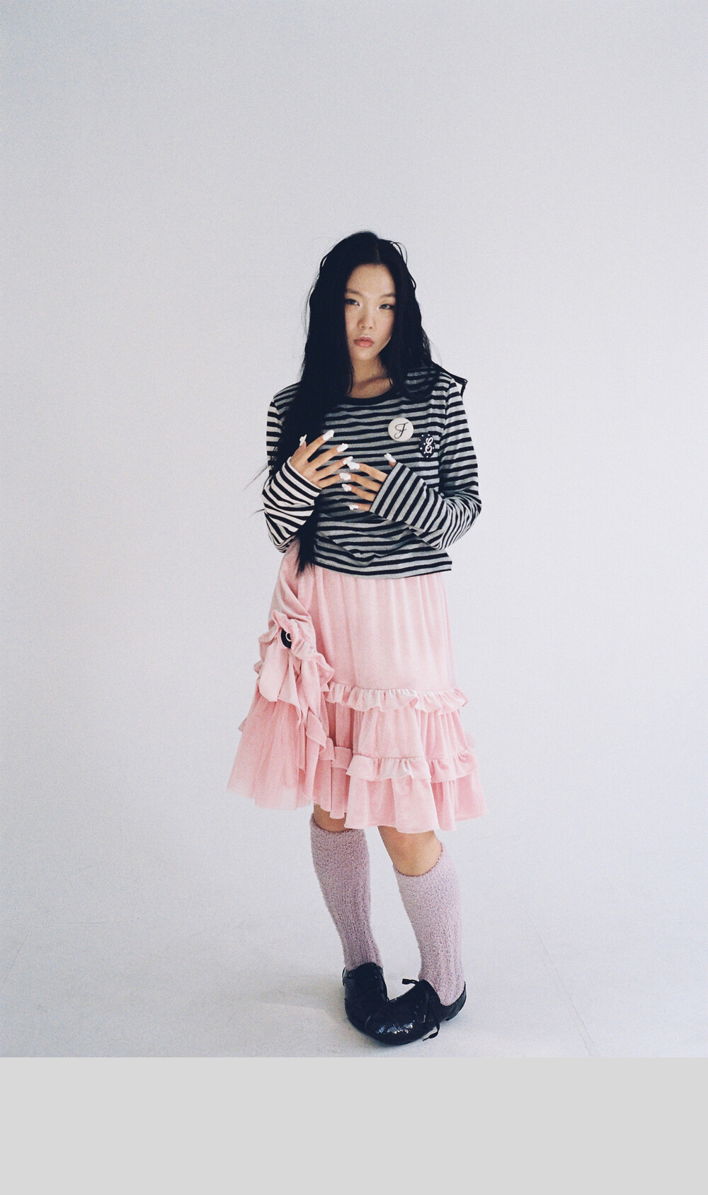 [fa.er.ie] romantic velvet midi skirt (pink)