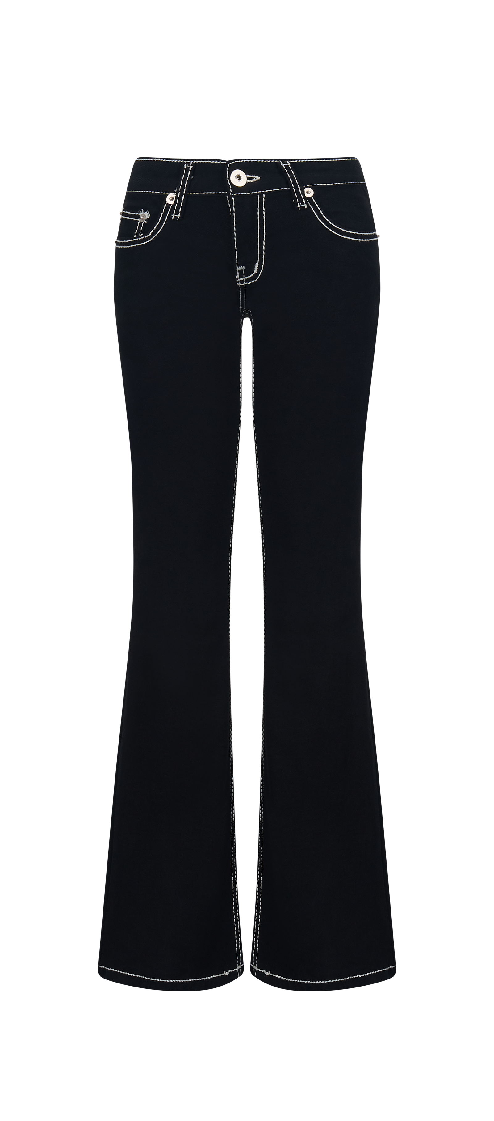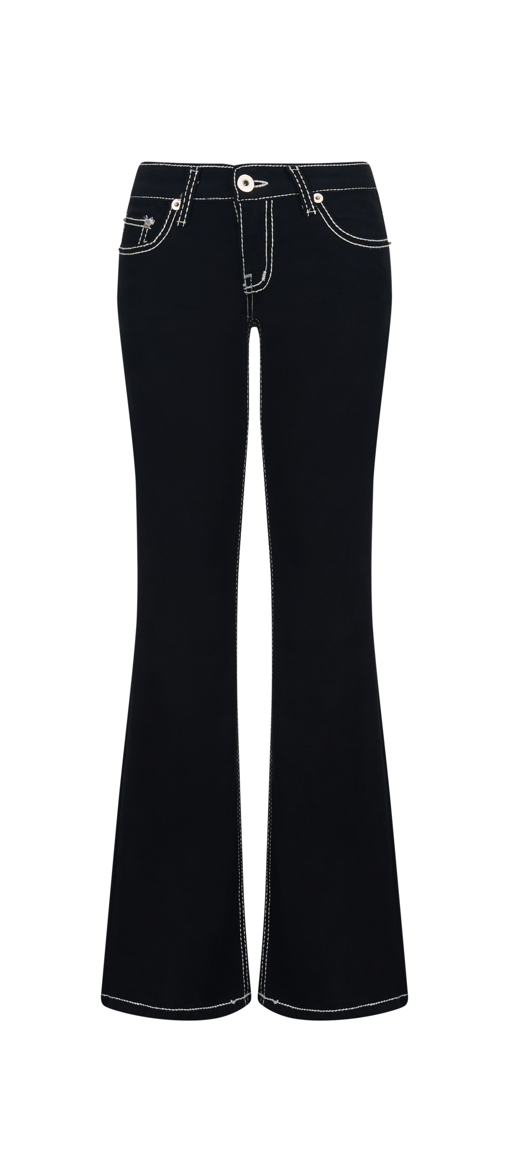 - 스티치 포인트와 페미닌한 로우라이즈 플레어 팬츠