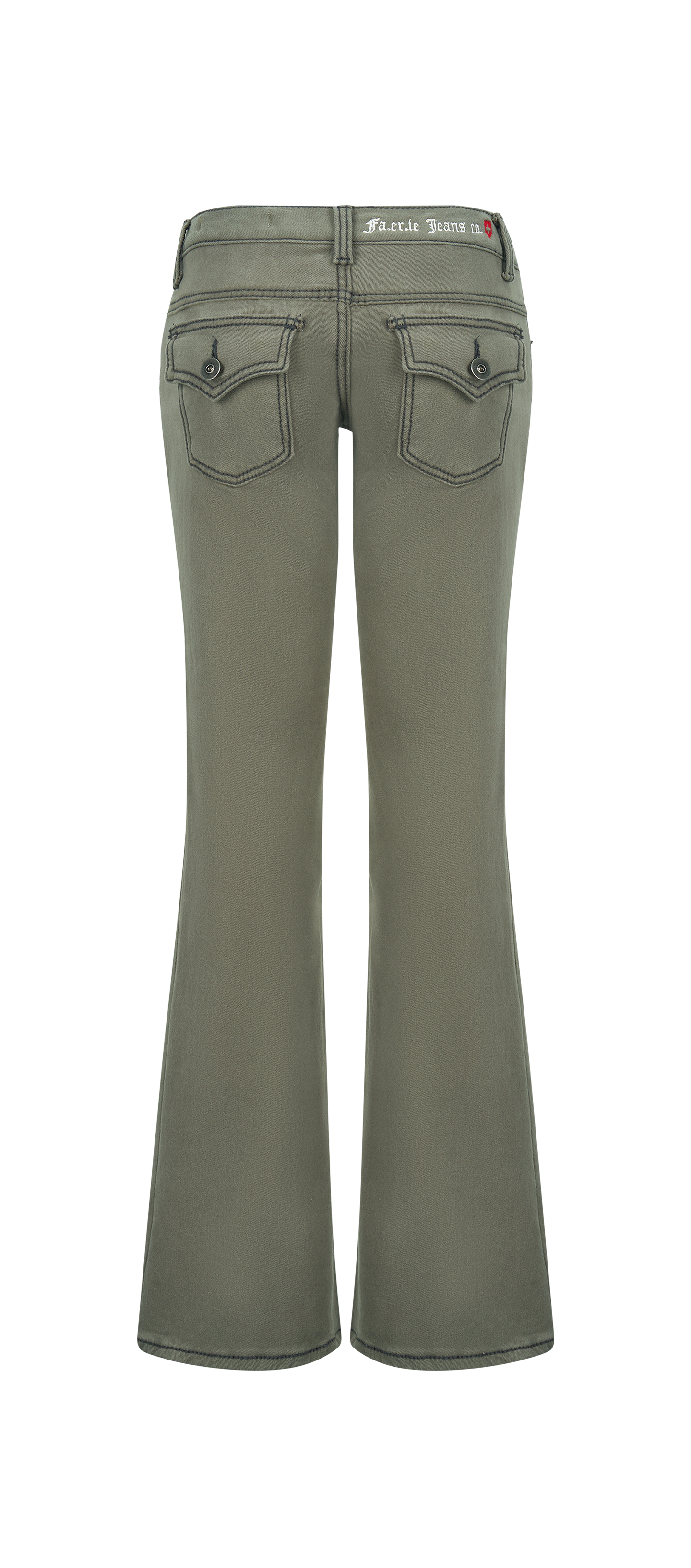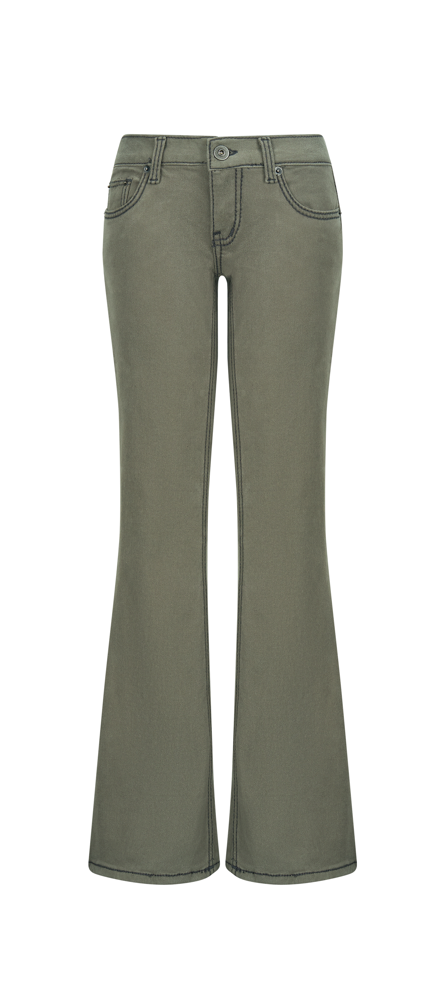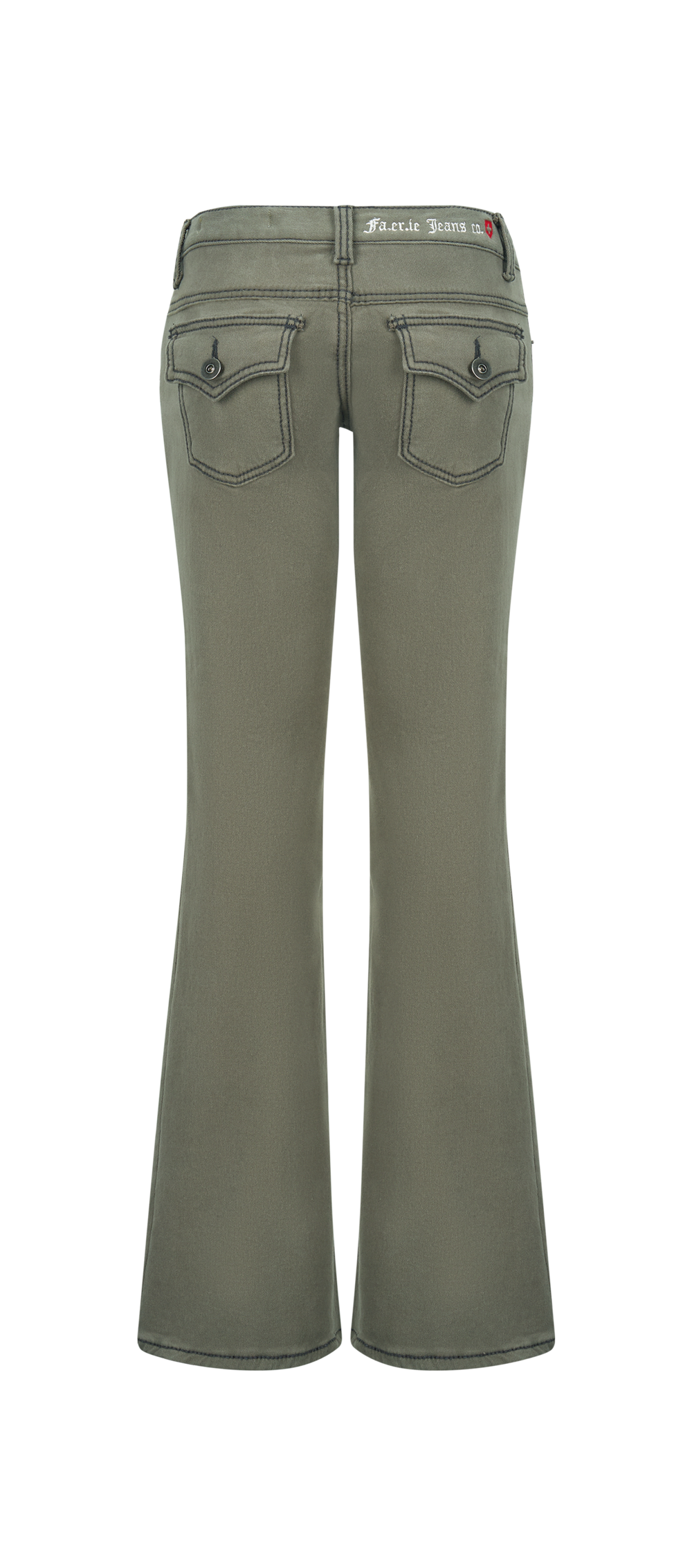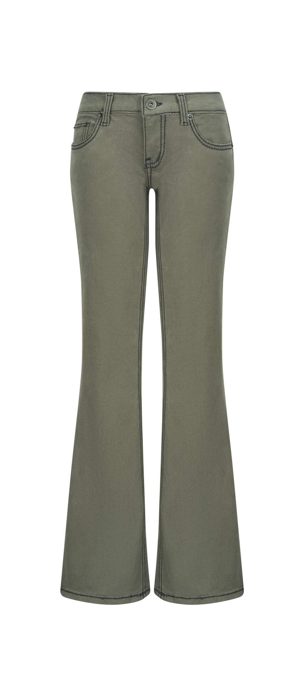 2차★[fa.er.ie] stitch low rise flare pants (khaki grey)
