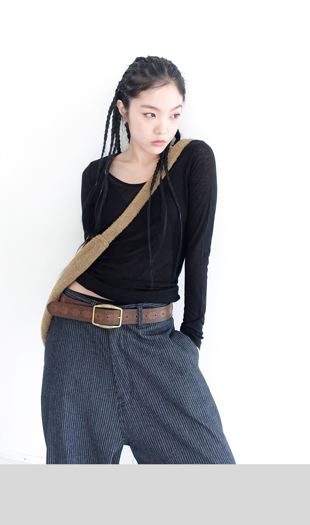 stripe thick pintuck pants